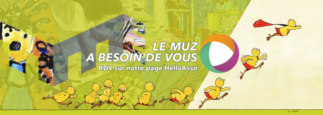 Devenez mécène du Muz en faisant un don sur Hello Asso ! Grâce à votre donation le Muz pourra développer son activité de valorisation des œuvres des enfants et promouvoir la nécessité d’ouvrir des espaces de créativité aux enfants.
