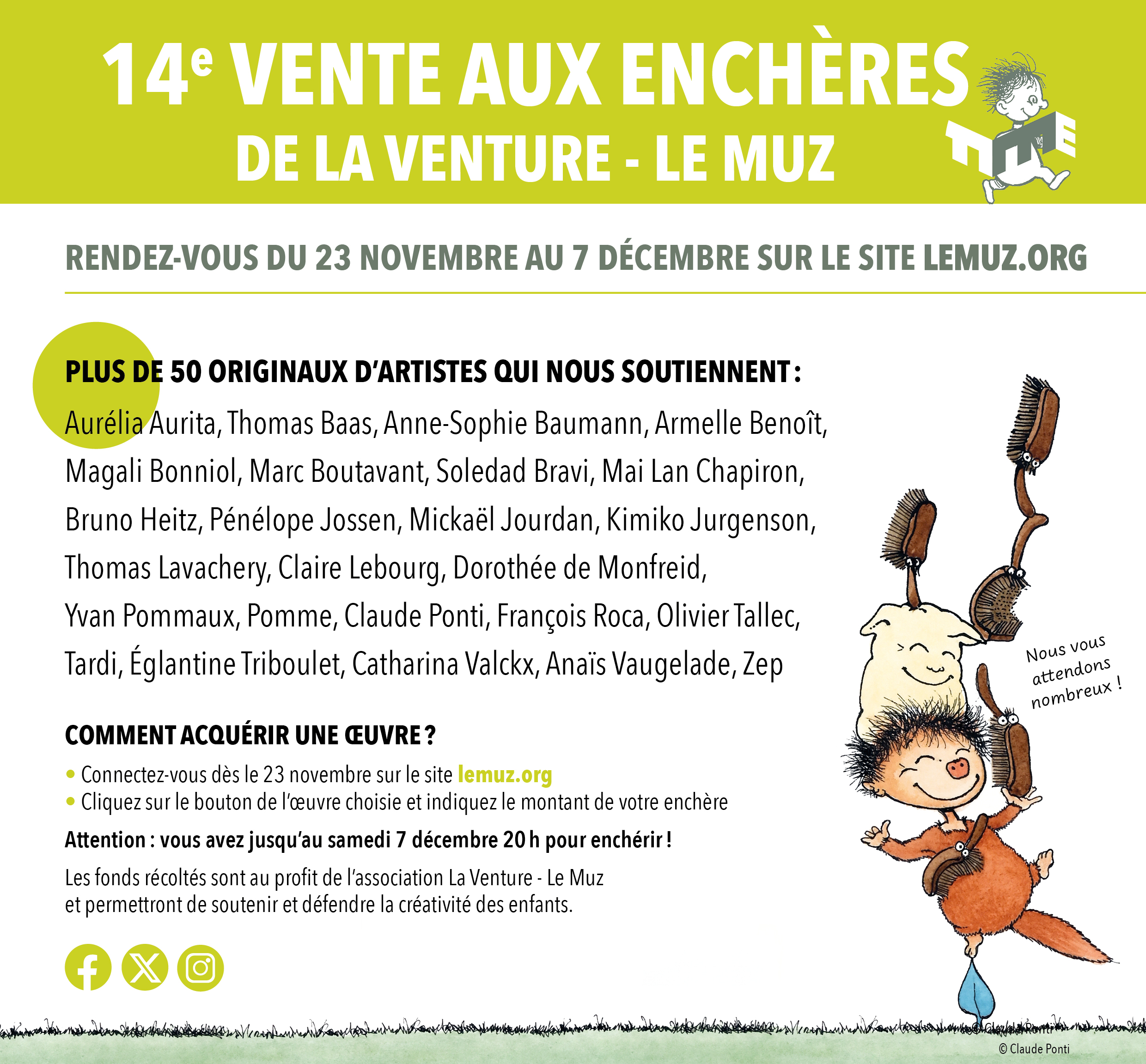 15 Nov 2024 Agenda La Vente aux enchères 2024 Du Samedi 23 novembre au samedi 7 décembre, 60 originaux de 24 artistes !