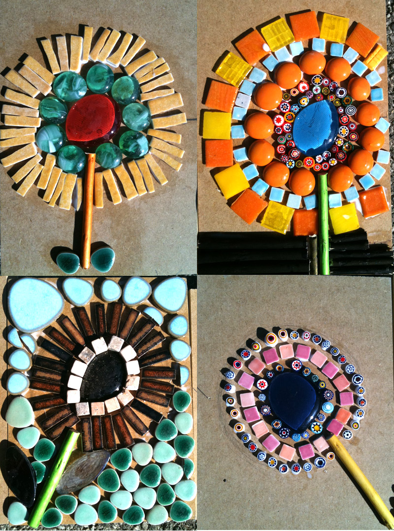 Lors des premières séances, les enfants ont découverts la richesse des tesselles, leurs transparences pour ceux qui avaient un certain degré de vision ou de sensation à la lumière.
