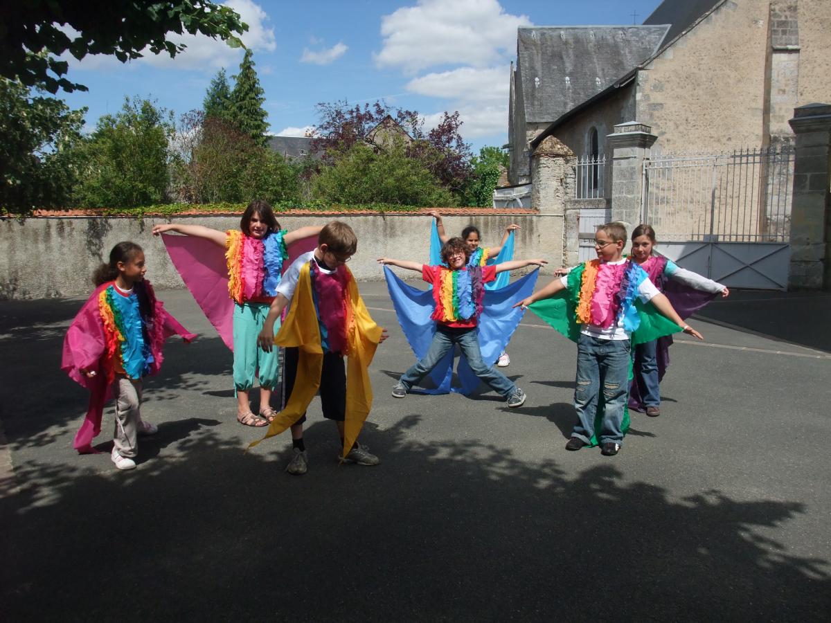 Elle a mis en place, avec les enfants des chorégraphies sur des musiques faisant le lien entre les rencontres de personnages.