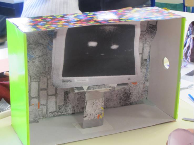 Au passage nous avons glané des informations sur le port, la ville, son histoire, ses représentations (y compris cadatrales).. et nous sommes imaginés architectes en dessinant l’univers de nos héros… et le réalisant en volume. Nos boites assemblées reconstituent le cheminement des personnages, les photos que nous avons réalisées donnent l’ambiance…