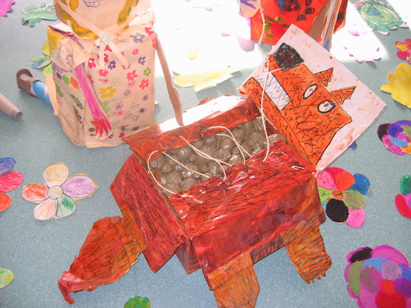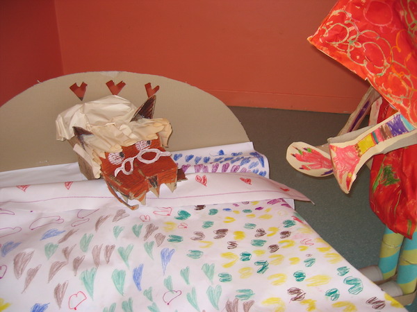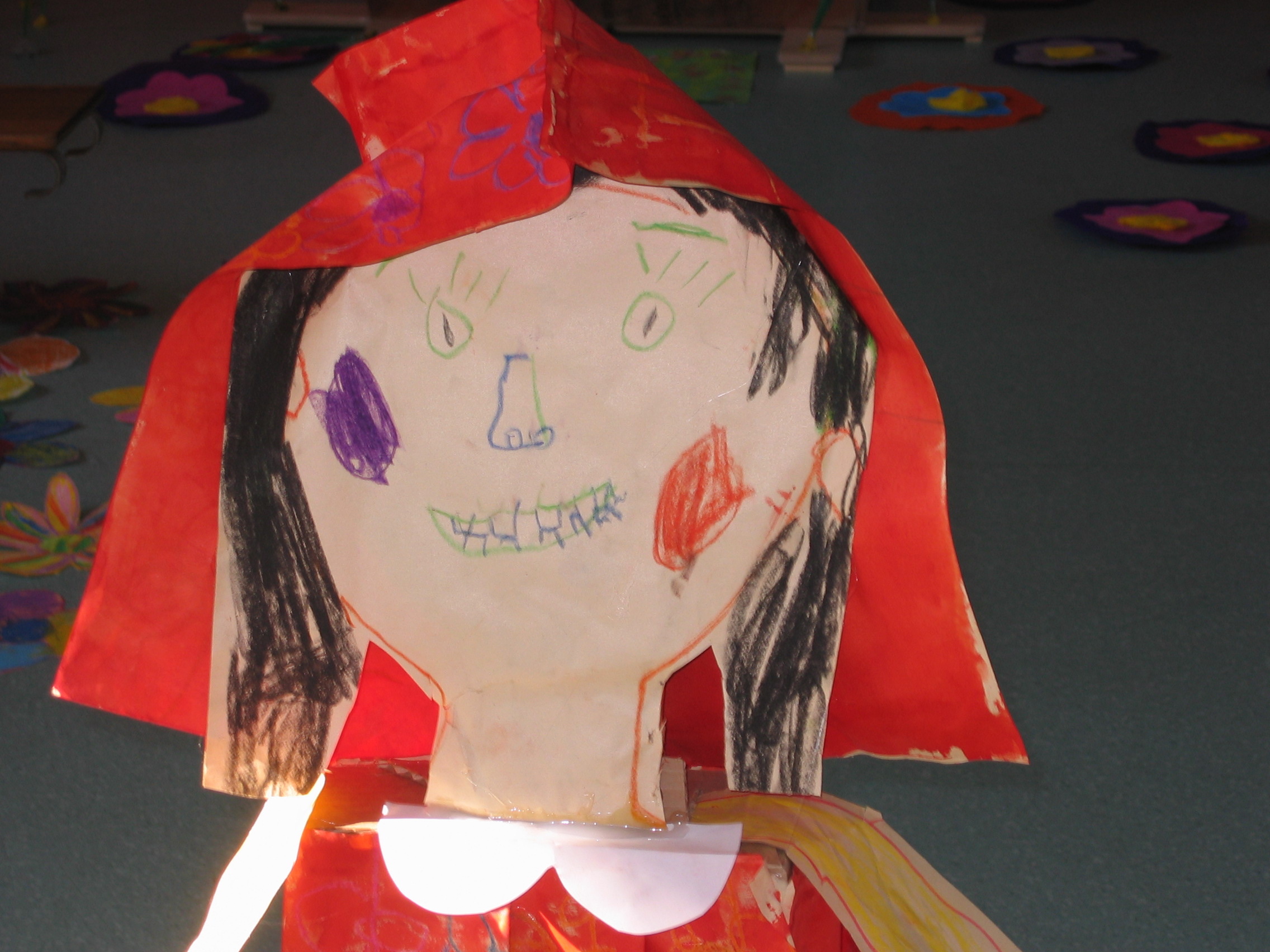 Du papier, des craies grasses et de l’encre… un enfant crée la tête, un autre le chaperon rouge, un autre encore, un bras, et ainsi de suite…