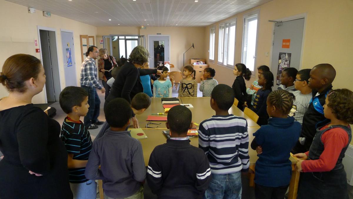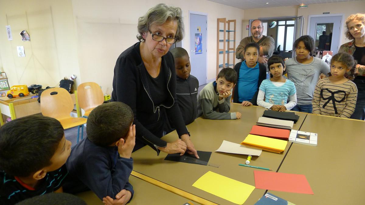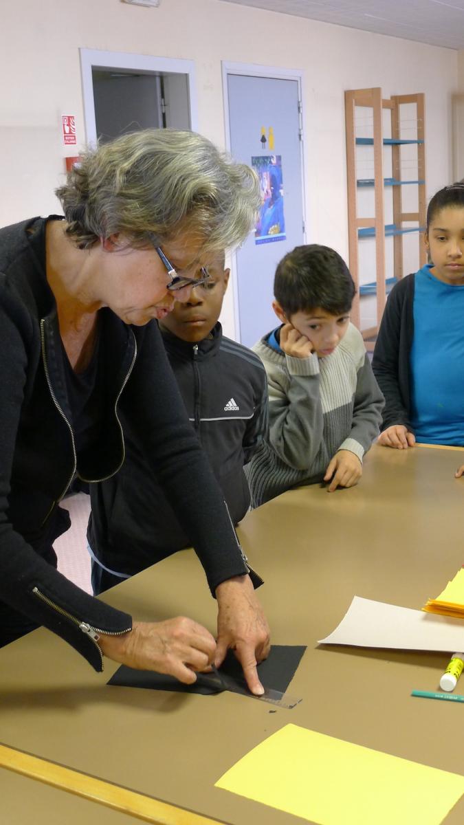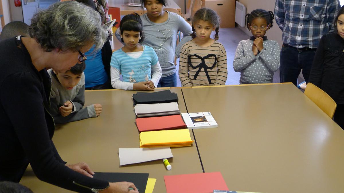 Le 20 octobre 2011 à Epinay-sur-Seine, les CM2 de l’école Anatole France, ont rencontré l’illustratrice SARA qui les a initiés à l’art du papier déchiré, sa technique de prédilection. Après leur avoir fait une démonstration, elle a invité les enfants à s’approprier cette technique pour créer leurs propres oeuvres.