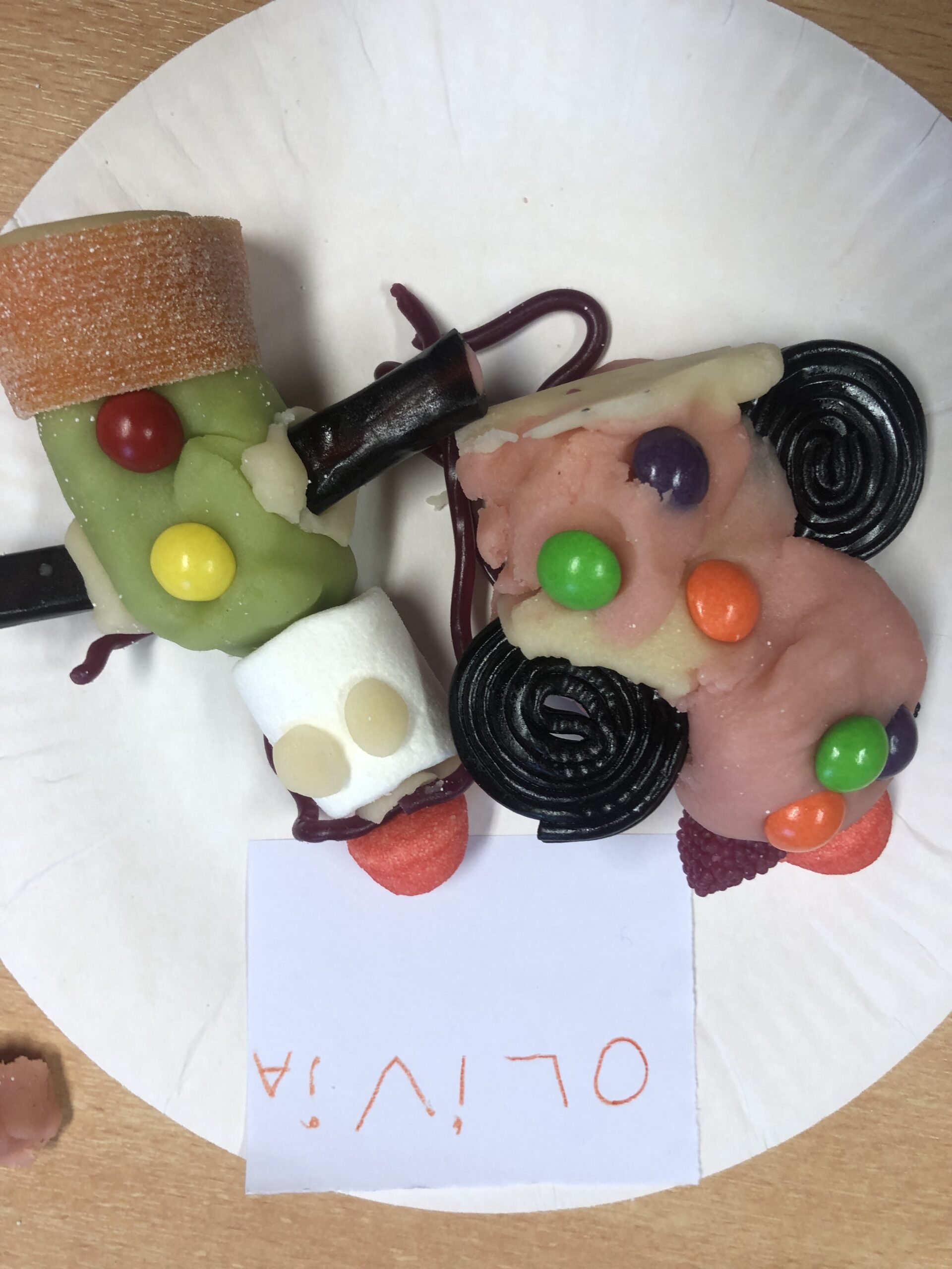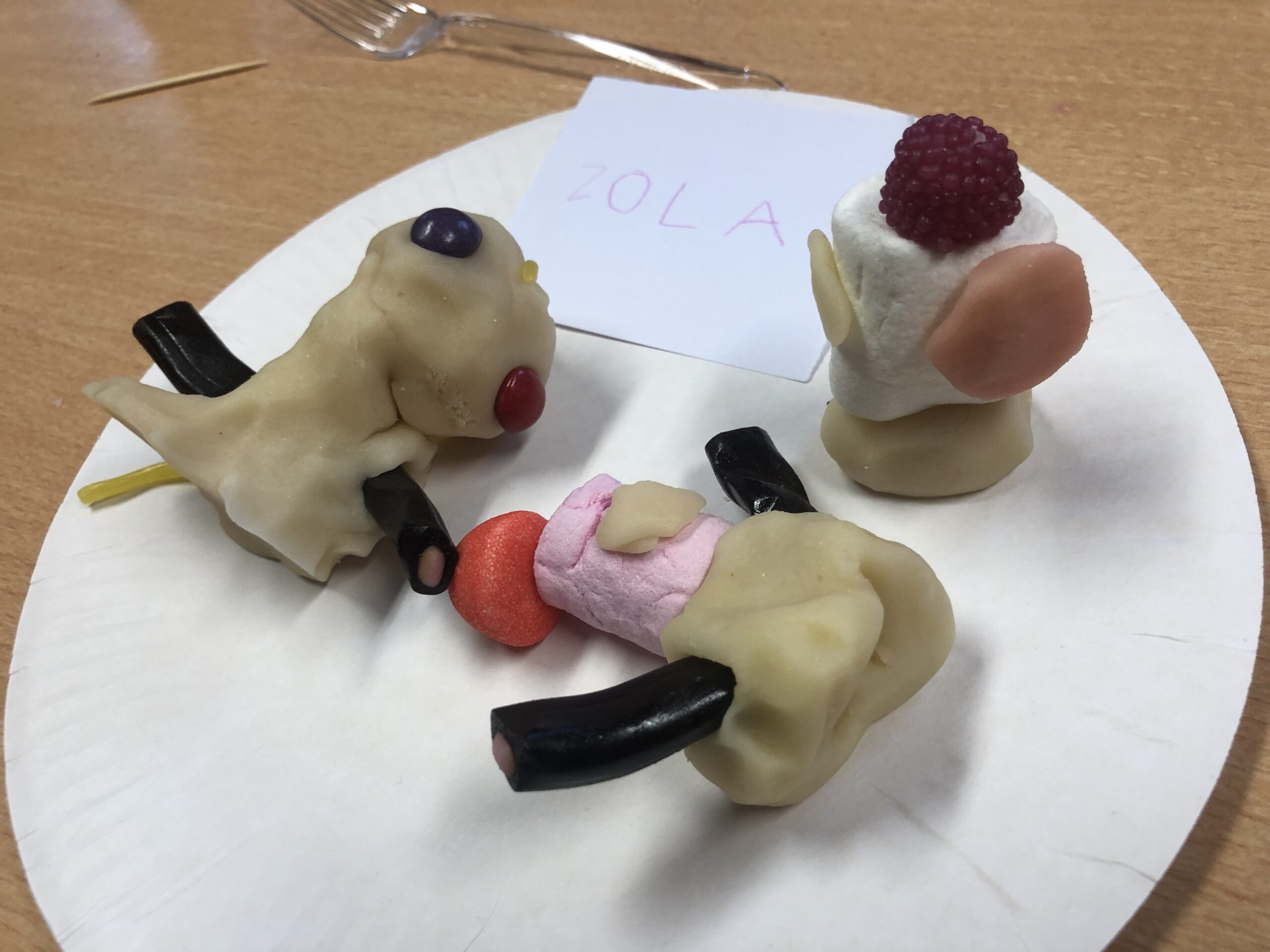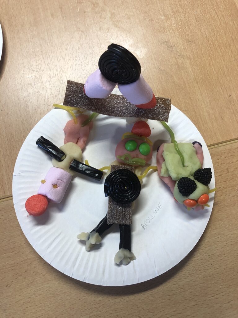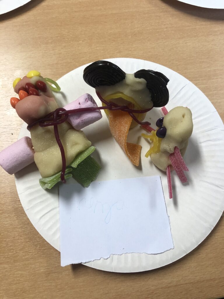 Modelage totalement comestible coloré et goûteux, pâte d’amande, bonbons etc…