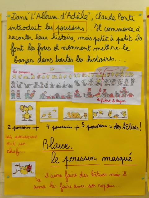 La 1ère séance s’est ouverte sur une présentation en images de Claude Ponti et de son œuvre, livrée avec quelques clés de lecture (autour du personnage d’Adèle, des poussins, des codes-barres, etc).
