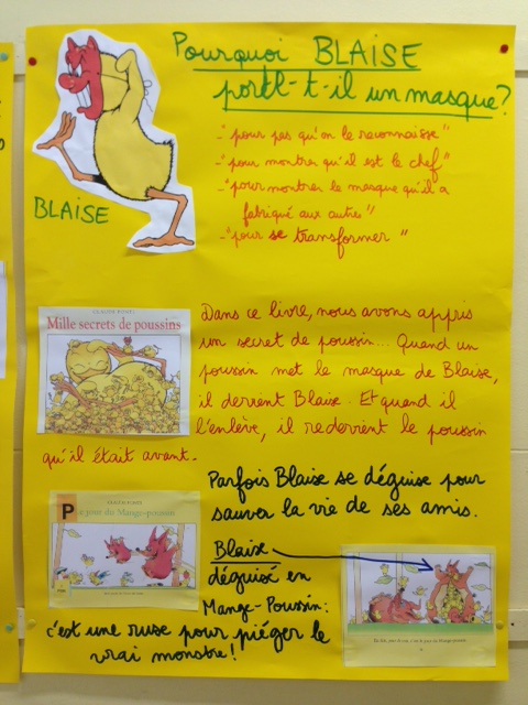 Puis les enfants ont fait la connaissance de Blaise et de Tromboline et Foulbazar, au travers de la lecture de 3 histoires (avec pour fil rouge le déguisement) : Les Epinards, Le Chien et le Chat, Le Jour du Mange-Poussin.