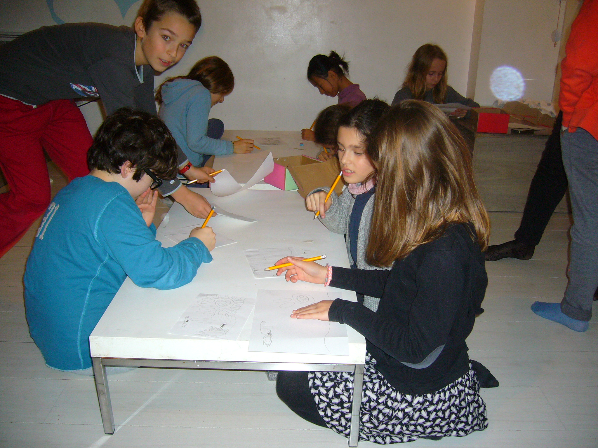 Il s’agit pour les enfants d’avoir également une véritable démarche artistique dans leur projet : chaque groupe possède une boîte « vide » qui doit se remplir progressivement de références à la pièce : photos, mots, articles, musique, livres … « tout » ce que leur évoque la pièce pendant mais aussi après l’atelier , à l’extérieur … être attentif et savoir observer le monde qui nous entoure pour puiser à l’intérieur …