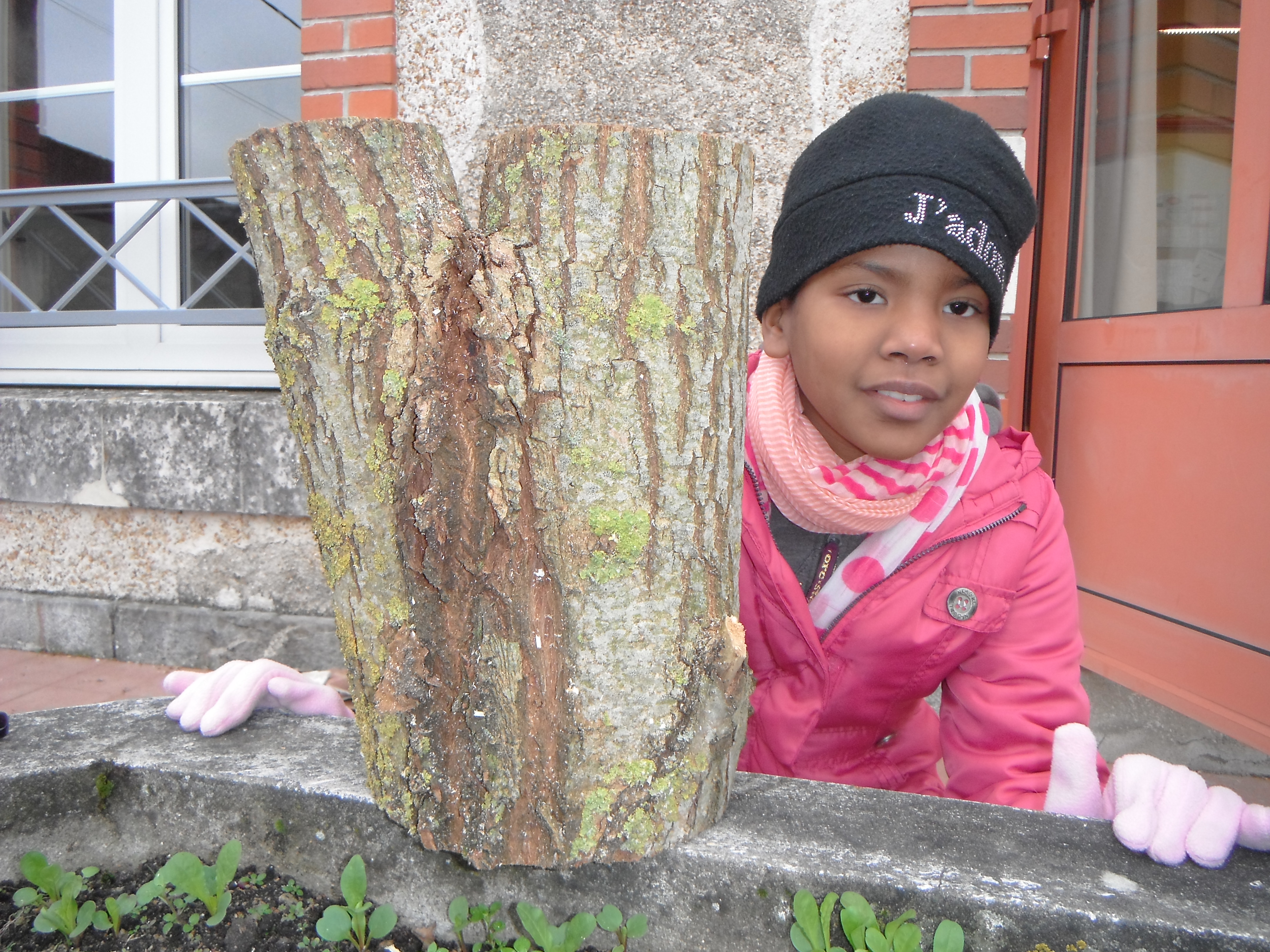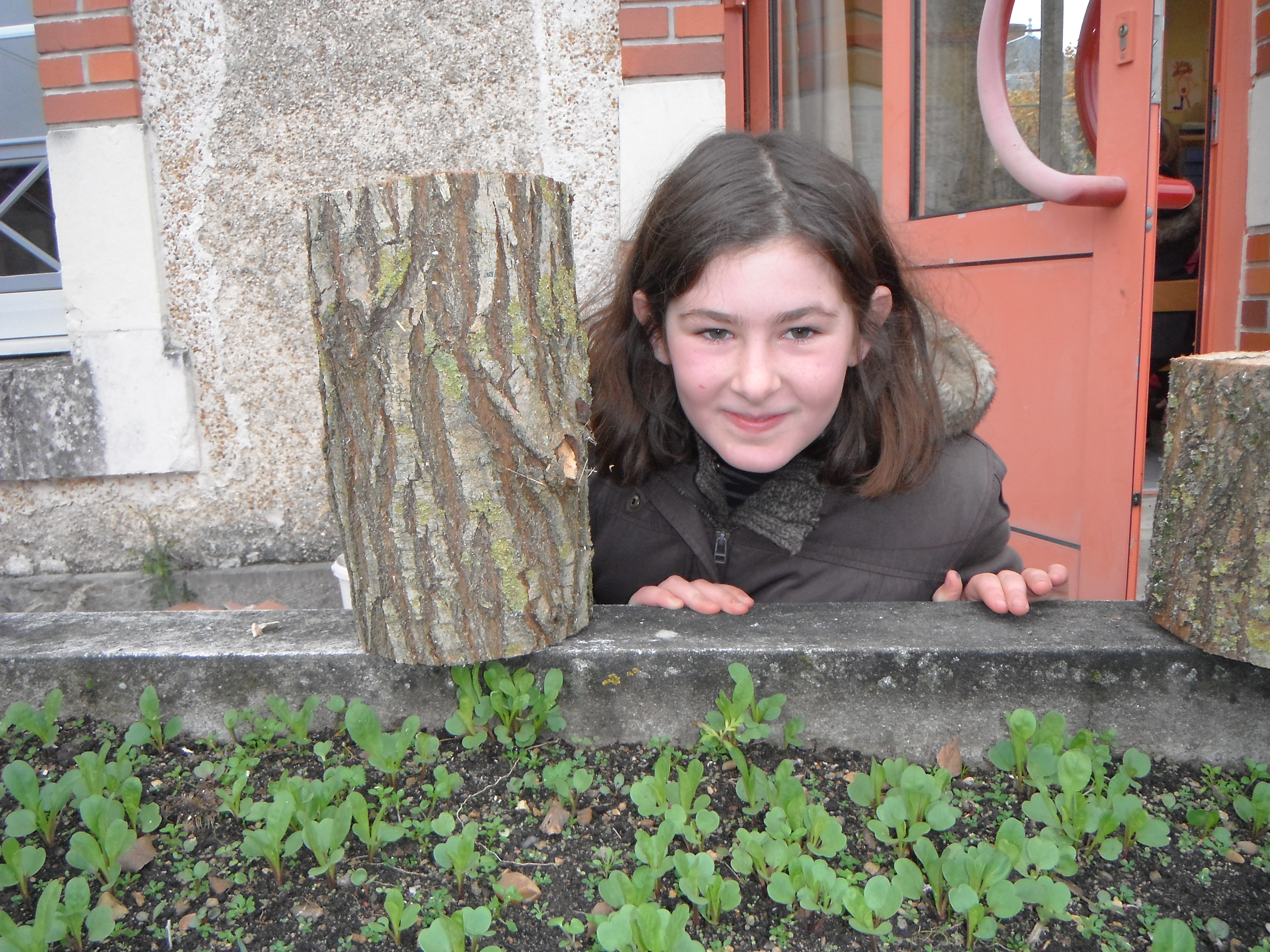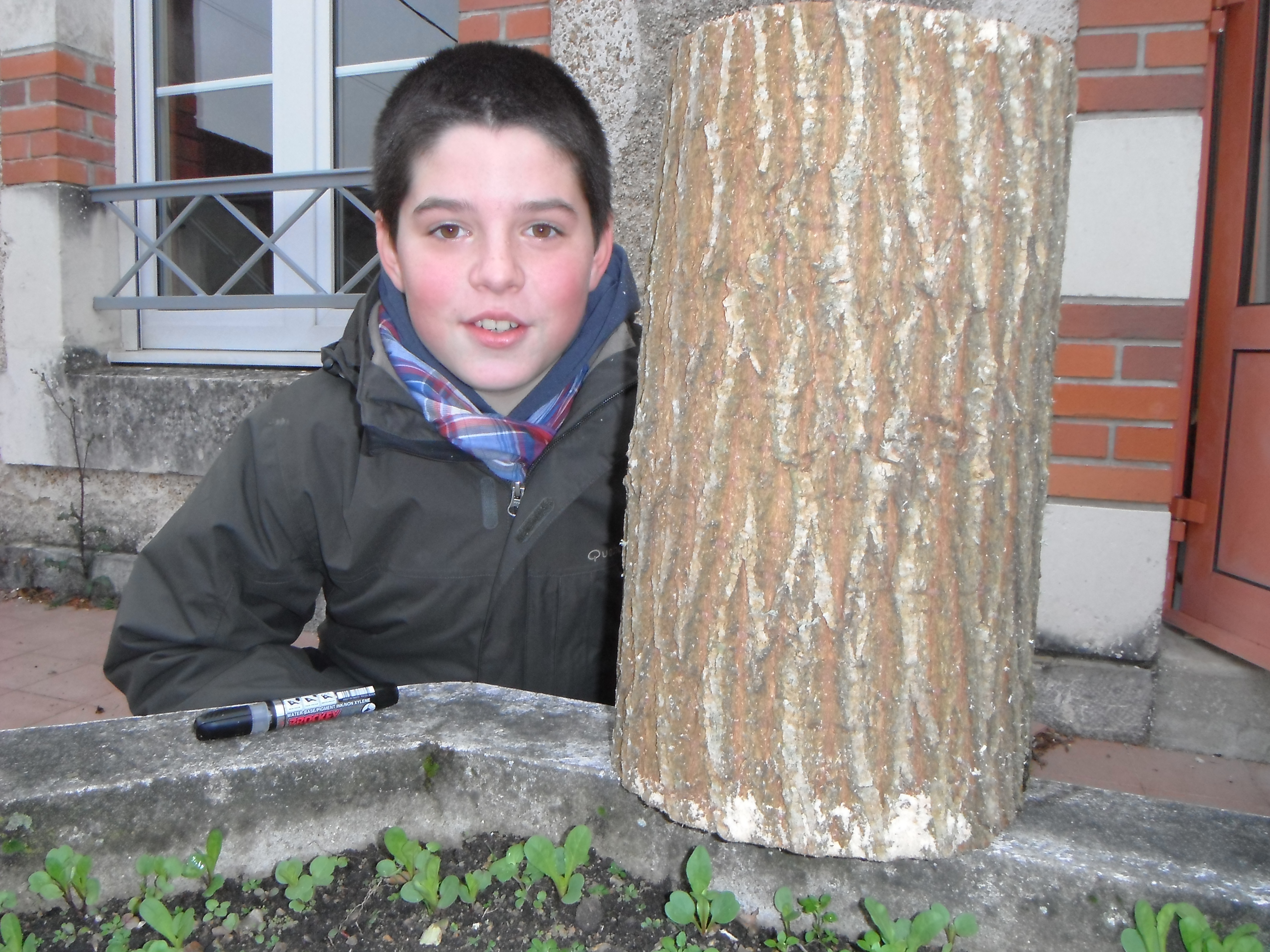 Le lecteur attentif remarquera qu’il faut l’aide des adultes, de la mairie, des bûcherons, d’un menuisier et du personnel de la mairie capable de transporter les rondins, de creuser les trous pour planter les totems, de fixer les têtes sans se tromper de corps et de sourire en plus. C’est la richesse dont jouissent les enfants de Marçon. Par ailleurs travailler sur un visage quel qu’il soit est toujours une expérience profonde et dont les enjeux dépassent largement l’injonction initiale. C’est ici qu’il faut regarder attentivement les photos des enfants, posant chacune, chacun près de son totem.