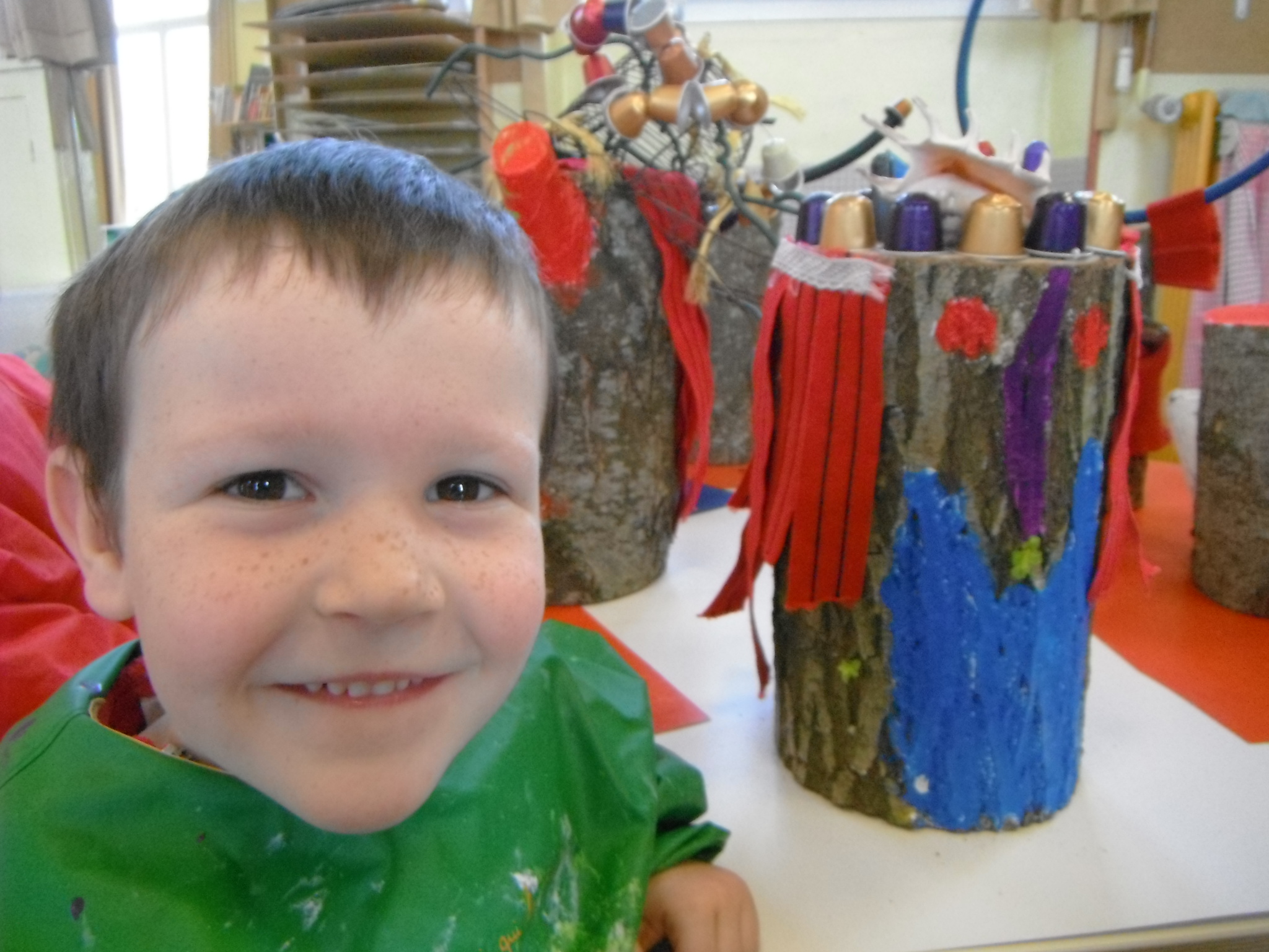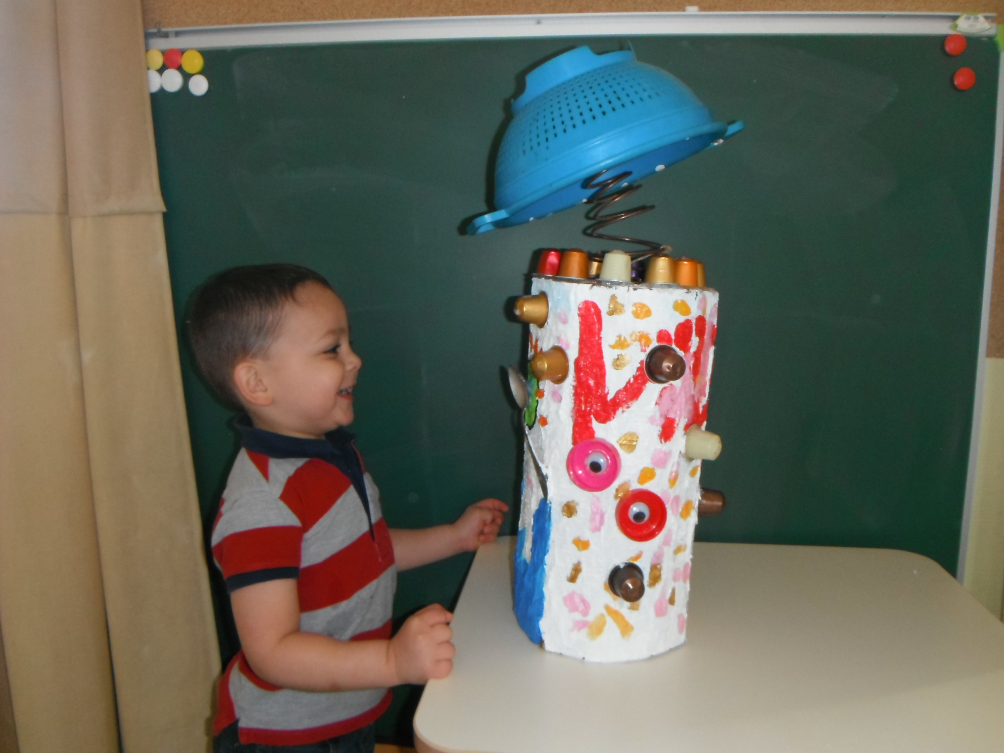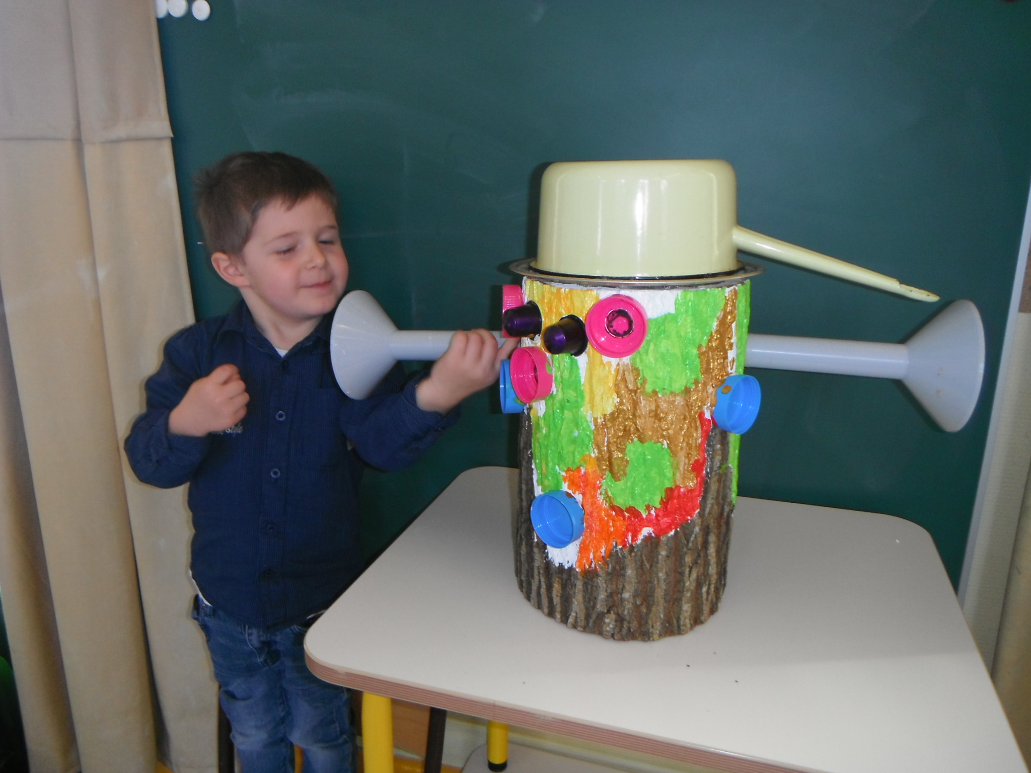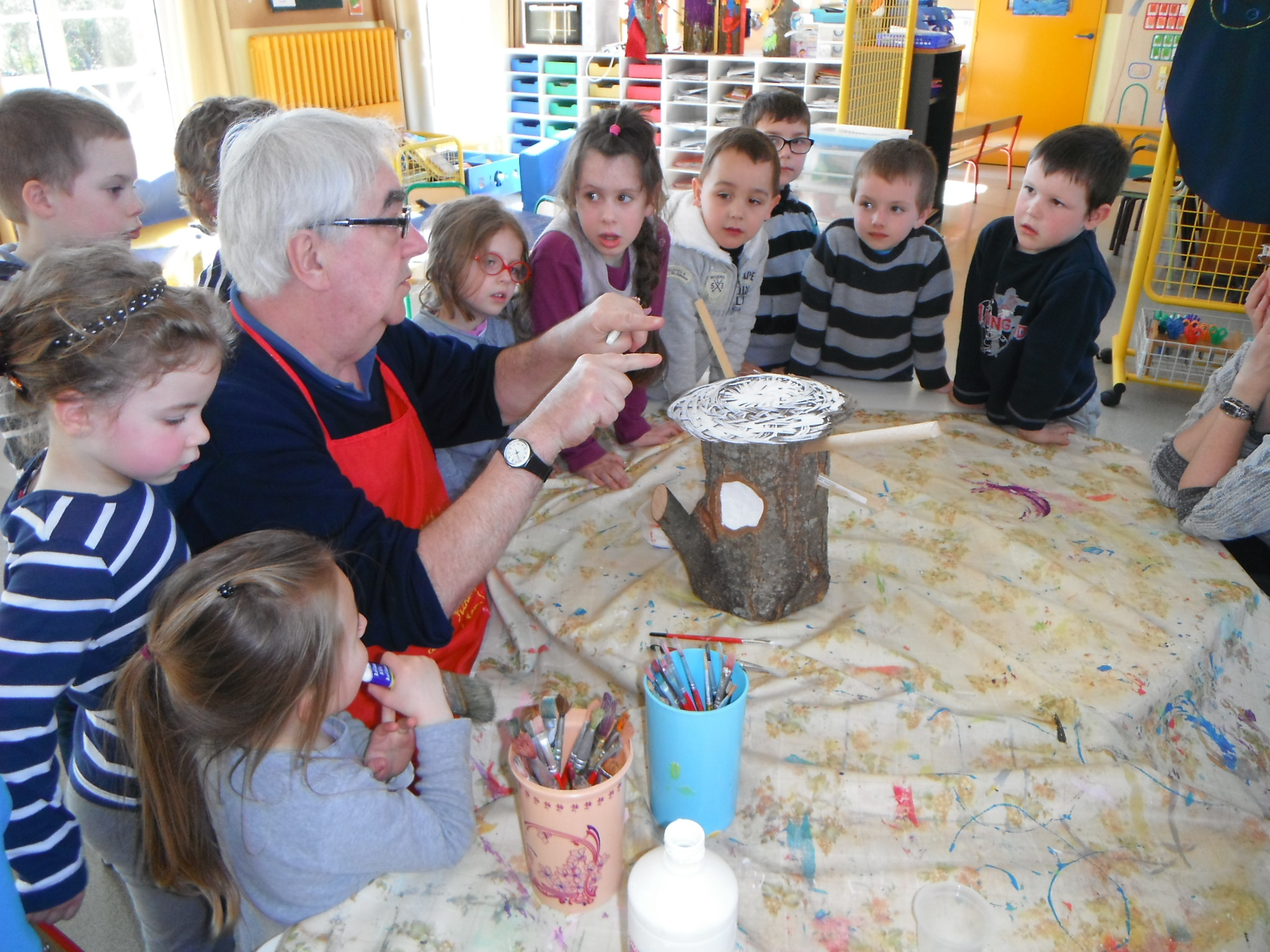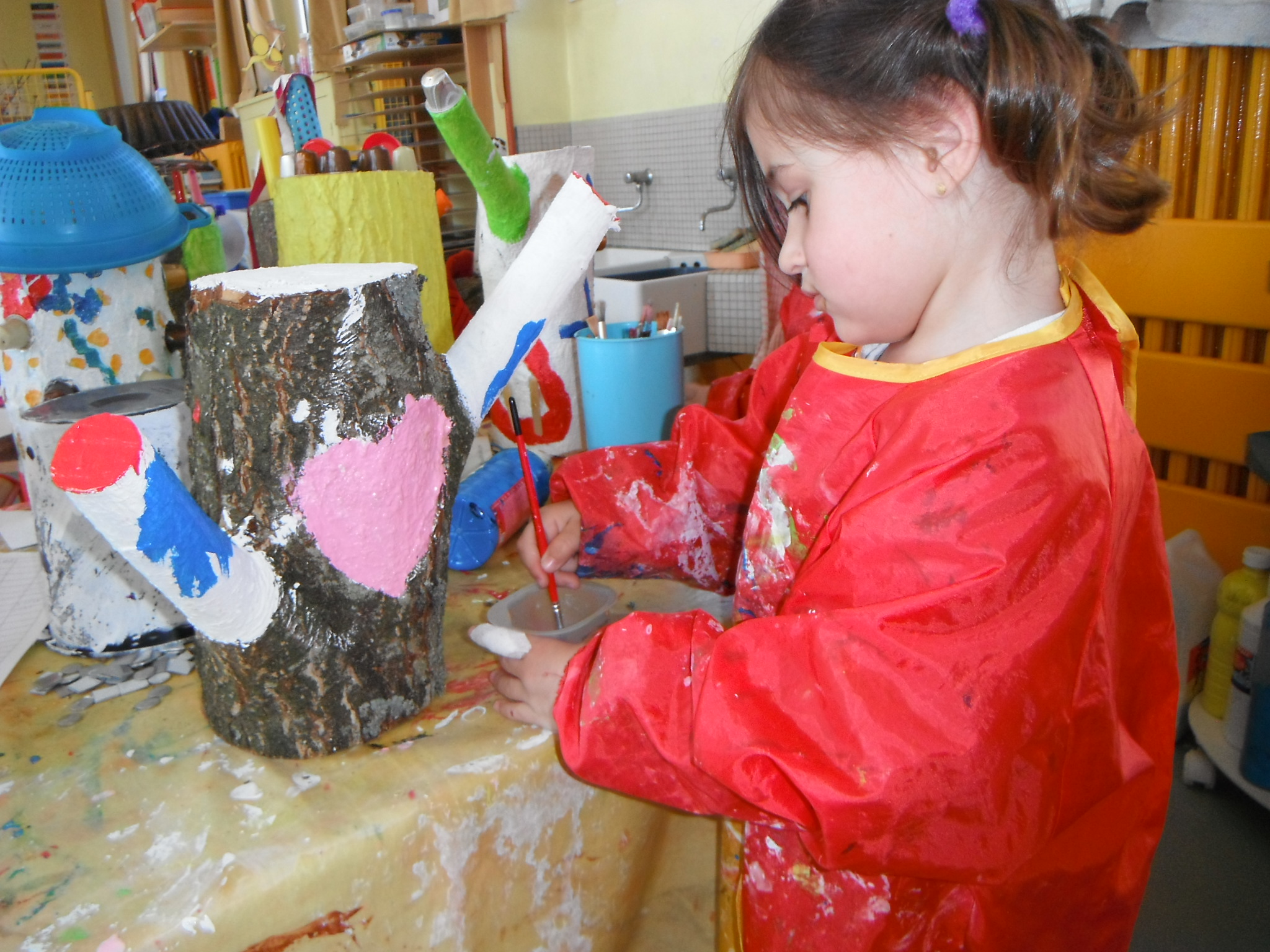 Les familles, amis ont apporté des trésors. Les enfants ont choisi dans les caisses, ont fait des essais et se sont décidés rapidement. Ils avaient en général des idées catégoriques. Tout le monde a aidé à fixer: parents, stagiaires, aides, enfants apportant leurs idées, outils et savoir-faire.