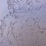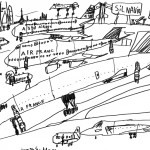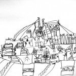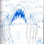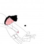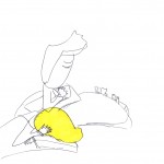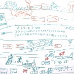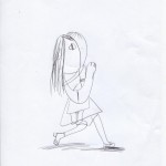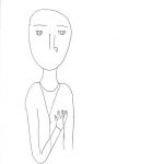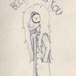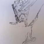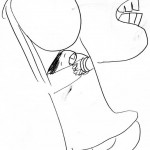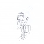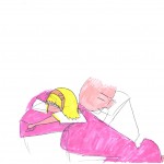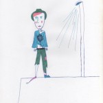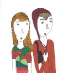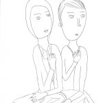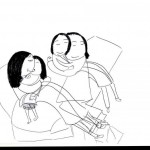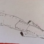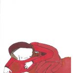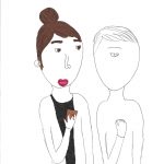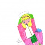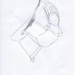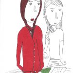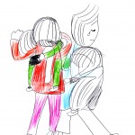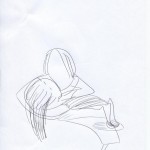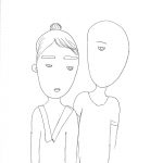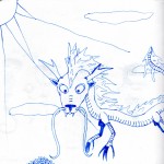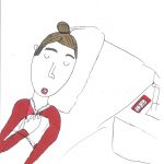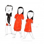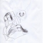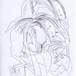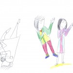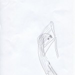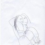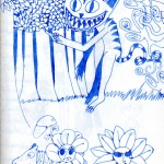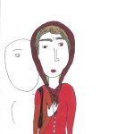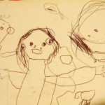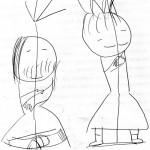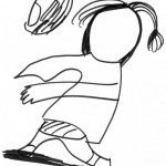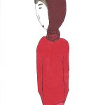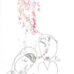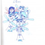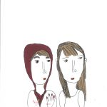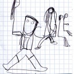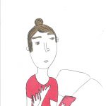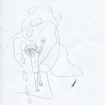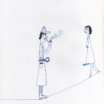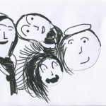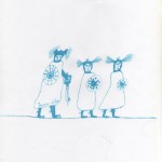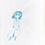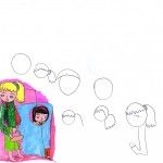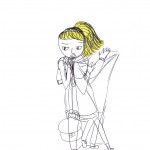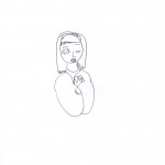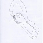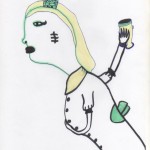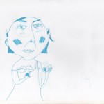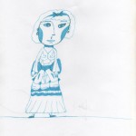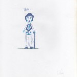 Le regard de Claude Ponti : Louise dessine comme elle respire. Sans s'arrêter. Et par nécessité. Les dessins de Louise dessinent de la vie au présent permanent. Sur ce qu'elle trouve, et quand cela passe dans sa tête. Parfois on voit en transparence à l'envers "THE DANSANT". C'est le dessin qui s'impose, parole graphique. L'important n'est pas la qualité du papier, la recherche du support artistique approprié. Tout support est approprié : cahier, marge, flyer, papier d'emballage, nappe. Parce qu'il faut dessiner tout de suite, maintenant : mémé Lulu, le chat qui veille jalousement, ... Des portraits en vrai ou non. Tout le temps. Des petits bouts d'histoire, de la biographie express. Du souvenir immédiat. Louise est si riche, elle donne à tous vents. Soyons dans le vent !