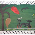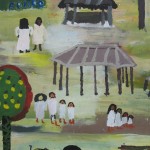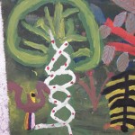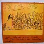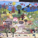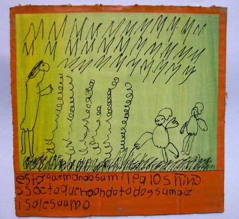 Cette fresque intitulée "le village de Naha" fait partie des trois fresques peintes par les enfants Lacandons de Naha en 2005, avec l'aide de l'artiste et enseignante Gill Eatherley. Réalisée sur toile, en acrylique, elle est l'oeuvre d'une commande de Conaculta, au Mexique, pour le programme "Alas... En savoir plus