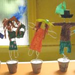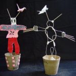 Avant de se lancer dans la réalisation de grands épouvantails on peut proposer aux enfants d'en réaliser de tout petits à partir d'une structure en fil de fer qu'ils habilleront de toutes sortes de façons ; grotesque, poétique, joyeuse, insolente. Au fil de leurs réalisations, les enfants oublient un peu l'objectif initial de faire peur et se font surtout plaisir.