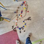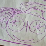 Et puis, ils ont rencontré Torto, notre mascotte bien-aimée. Avec ses grands yeux malicieux et son sourire tendre, Torto est devenu leur modèle : tout vert, tout doux, et toujours prêt à poser pour leurs crayons ! Les enfants ont dessiné son visage avec application, en respectant chaque détail et chaque couleur, une étape magique pour affiner leur regard et apprivoiser le dessin d’observation. [Production artistique 3 + Photo de Torto]