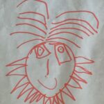 "Au cours de cette première période, les élèves de Petite et Moyenne Section ont d’abord été invités à dessiner un visage en septembre, avant tout apprentissage scolaire, pour capter leur approche instinctive et spontanée de la représentation. [Production artistique 1] Ensuite, semaine après semaine, les élèves ont appris de nouveaux motifs graphiques, des petits chemins de lignes et de formes qu’ils ont ensuite semés sur leurs dessins de visages, un peu comme on planterait des graines de créativité. [Production artistique 2]