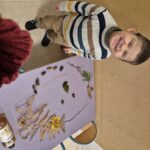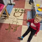 Ensuite, les PS ont imaginé des "visages-forêt", composés d’éléments naturels récoltés : feuilles, branches, glands ou cailloux. Ces visages semblaient incarner la nature elle-même, avec une touche d’émerveillement enfantin. Quant aux MS, ils ont conçu un ami "le bonhomme-forêt", un personnage à la fois ludique et magique. En combinant les trésors de la forêt avec leur créativité, ils ont donné naissance à des bonshommes qui racontent la nature dans toute sa diversité. Ces activités ont permis d’aborder les notions d’équilibre, de composition et de symbolisme avec sensibilité.