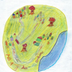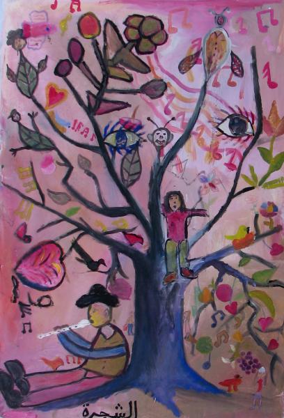 Le motif de l'arbre est très présent dans les dessins d'enfant . Il est le symbole et métaphore de la vie humaine , ne parle-t-on pas d'arbre de vie , ou d'arbre généalogique ? On plante souvent un arbre pour les évènements heureux de la vie , naissance , mariage, il est l’incarnation d’une mémoire parce qu'il nous survit souvent. Il est symbole de transmission , du temps qui passe et repasse avec les saisons dans leur rythme immuable. Il semble véhiculer une forme d'éternité d'un temps qui n'est pas le nôtre. Les enfants sont immergés dans ces symboliques culturelles qui nourrissent leur imaginaire et leurs dessins en sont le reflet - et cela quelques soient leurs 'origines géographiques - seules les espèces d'arbres diffèrent.