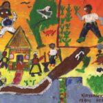 Cette affirmation se vérifie dans les oeuvres du Muz : fleurs aux larges sourires, arbres réconfortants ou angoissants peuplent les oeuvres d'enfants. Ces personnages souvent amis sont une manière de s'approprier leur environnement. Le jardin, dans la culture occidentale est une évocation du paradis, les enfants ne s'y trompent pas et célèbrent dans leurs oeuvres les habitants de ce havre de paix. Les préoccupations écologiques de notre époque influencent bien évidemment les créations des enfants qui deviennent défenseurs d'une nature bienveillante et protectrice pour qu'elle ne devienne pas un paradis perdu ...