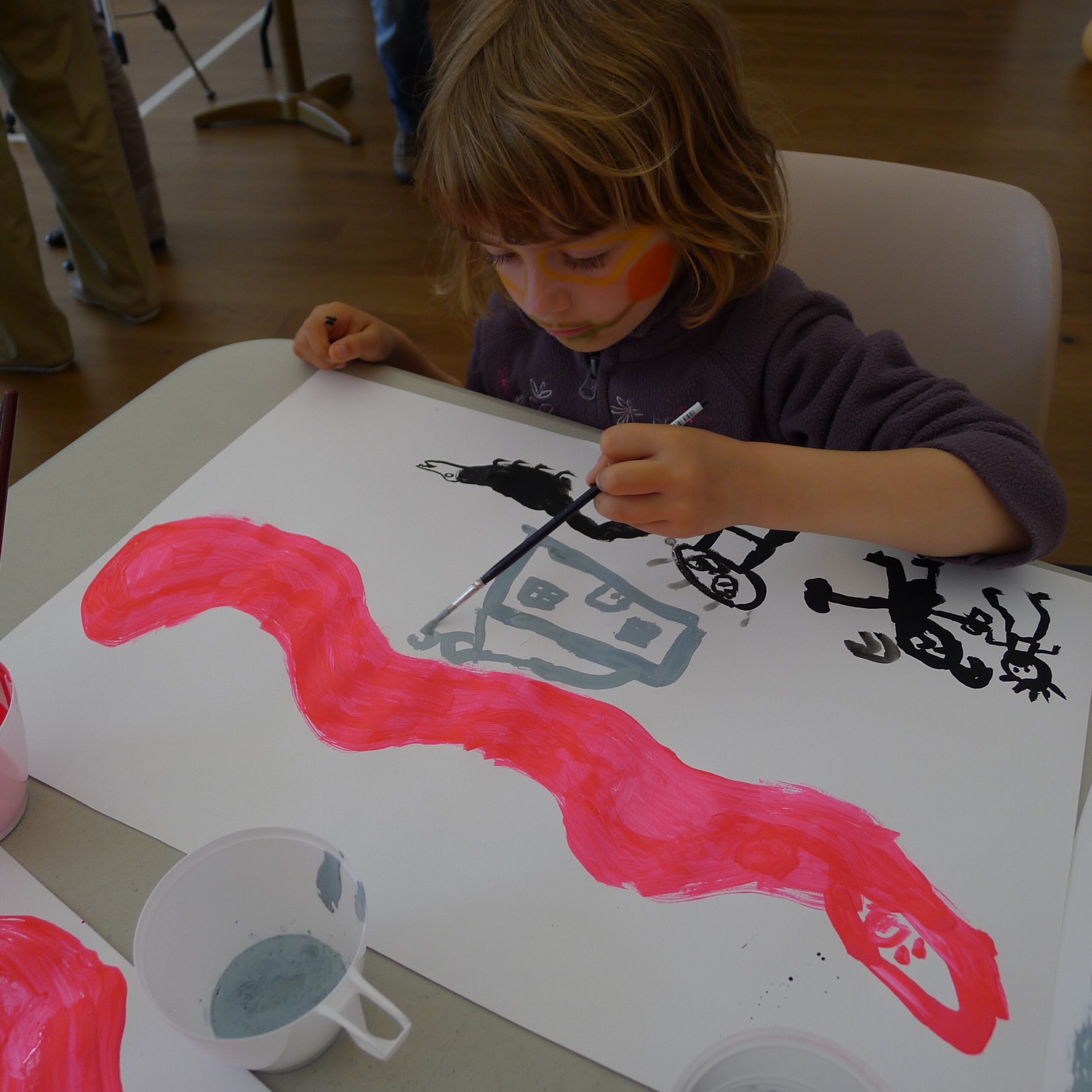 Les enfants ont pu choisir entre peindre, dessiner, se maquiller, se déguiser. Certains n'ont pas voulu choisir et ont participé à deux ateliers ! Une créativité joyeuse était au rendez vous.