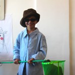 Après avoir fait le portrait de quelques enfants avec de drôles d'objets sur la tête, Claude Ponti les a invité à se déguiser, à se maquiller et à venir poser devant l'objectif dans une zone de photographie délimité.