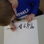 Pour faire connaissance avec son "coup de feutre", les enfants ont demandé à Alan Mets de dessiner certains éléments : un loup, un chien ...