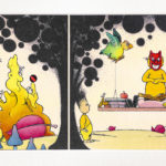 Composée de 41 dessins originaux de Claude Ponti et de 11 œuvres d’enfants issues de l’artothèque de l’association. Cette exposition est construite autour de 4 thématiques :