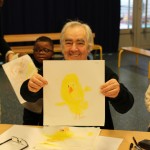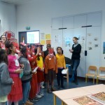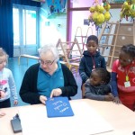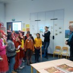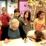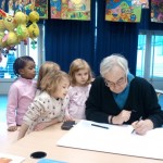 Ils ont échangé dessins, livres, questions, chansons et même quelques bonnes blagues concoctées par les enfants (qui ont beaucoup plues à Claude Ponti !) :