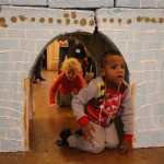 A l'arrivée un château construit par le lycée Belliard, avec 1000 sachets de vrais gâteaux sur ses créneaux ! Et un passage dans le château par lequel les enfants ont dû passer pour accéder à la table pleine de gâteaux à déguster . Une épreuve très joyeuse !