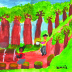 De Madagascar au Pérou, en passant par l’Inde et le Burundi, les œuvres des enfants expriment souvent le travail de la terre. Ainsi, les enfants du monde se plaisent à représenter les agriculteurs, les bûcherons, les éleveurs, les forestiers ou encore les pêcheurs.