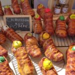 Des cagettes de légumes inconnus, des graines de tartelettes, des ailes d’étoiles filantes, des bocaux de petits poids de 50 gr, des pots d’échappement libre, des tonneaux pleins de cornichons voyageurs, des pochons de dents de Hors, des confitures de goudron, des macarons à la bouse de vache, des saucisses de sept et de huit, des paquets de pâtes de mouche, des seaux de carpes double Axel, des saucissons de doudou, des poticarrés, des pâtés de trottinette, de l’ail et des ouilles, des pâtes à modeler et à la sauce tomate, des pizzas à la bave verte, des bouteilles de jus de menhir, des flacons de prout, des yeux d’iguane surgelés, des plateaux de melons en large, des tranches de... des bottes de..., des boîtes de... des rillettes de... des oeufs de... des augerbines de... des gâteaux de ... du miel de... du coulis de... du rappé de... de la mousse de...