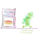 Dans les rayons de l'épicerie d'émerveille, on trouve au choix:des cagettes de légumes inconnus,des graines de tartelettes,des ailes d'étoiles filantes, des bocaux de petits poids de 50 gr, des pots d'échappement libre, des tonneaux pleins de cornichons voyageurs, des pochons de dents de Hors, des confitures de goudron, des macarons à la bouse de vache, des saucisses de sept et de huit des paquets de pâtes de mouche, des seaux de carpes double Axel, des saucissons de doudou, des poticarrés, des pâtés de trottinette, de l'ail et des ouilles,