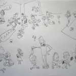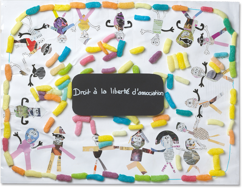 Dans cette salle, nous avons regroupé une grande partie des oeuvres réalisées en 2009 par les accueils de loisirs de la ville d'Issy les Moulineaux, à l’occasion des 20 ans de la Convention Internationale des Droits de l’Enfant. Dans cette salle aussi, quelques oeuvres de l'association Constellation, datant de 2007, avec qui nous sommes partenaires depuis des années.