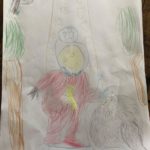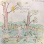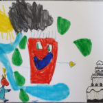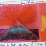 Une terrible coulée de boue entoura l'école pendant la récréation. La boue épaisse, brune, verte, et gluante forma un lac immense autour de l'école. Si immense qu'on n'en voyait pas la fin. Heureusement l'école était sur une hauteur et la boue n'est pas entrée dans la classe. C'était une école d'un tout petit village où il n'y avait qu'une seule classe avec des enfants de tous les âges.