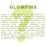 Dans la forêt profonde et mystérieuse si sombre que parfois les arbres se trompent de branche, vit une famille de Glompins arboricoles sur son arbre personnel, un Blincko Blabong de sept cents ans et quelques mois. Quelques lointures plus loin, vit une autre famille de Glompins, sur un Houtre verdissant de huit cent cinquante ans. Ainsi de lointures en lointures sur leur arbre de famille, vient les Glompins arboricoles. Un bûcheron en tracteur rouge et jaune jonquille spécialisé dans la coupe d'arbres rares arriva un matin...