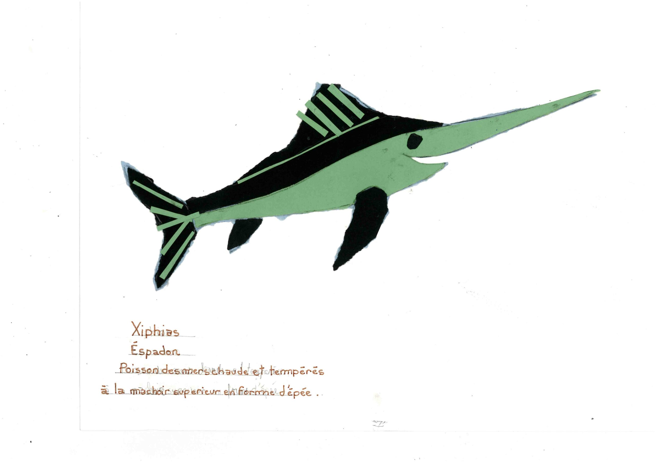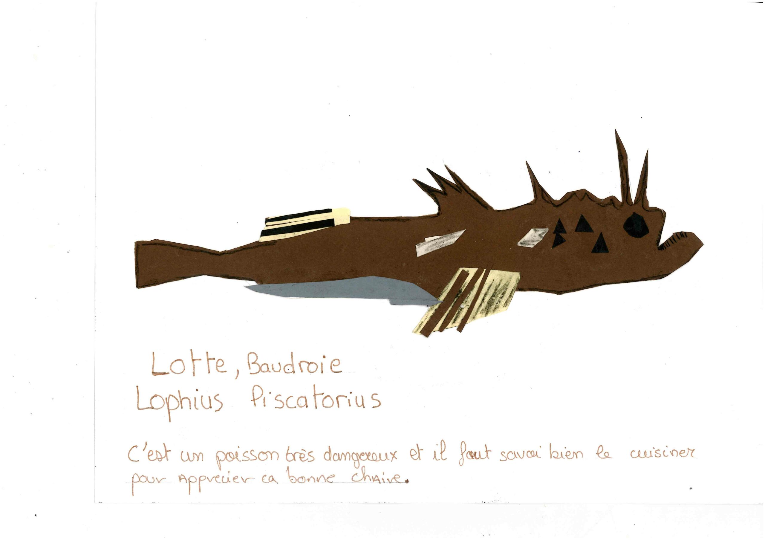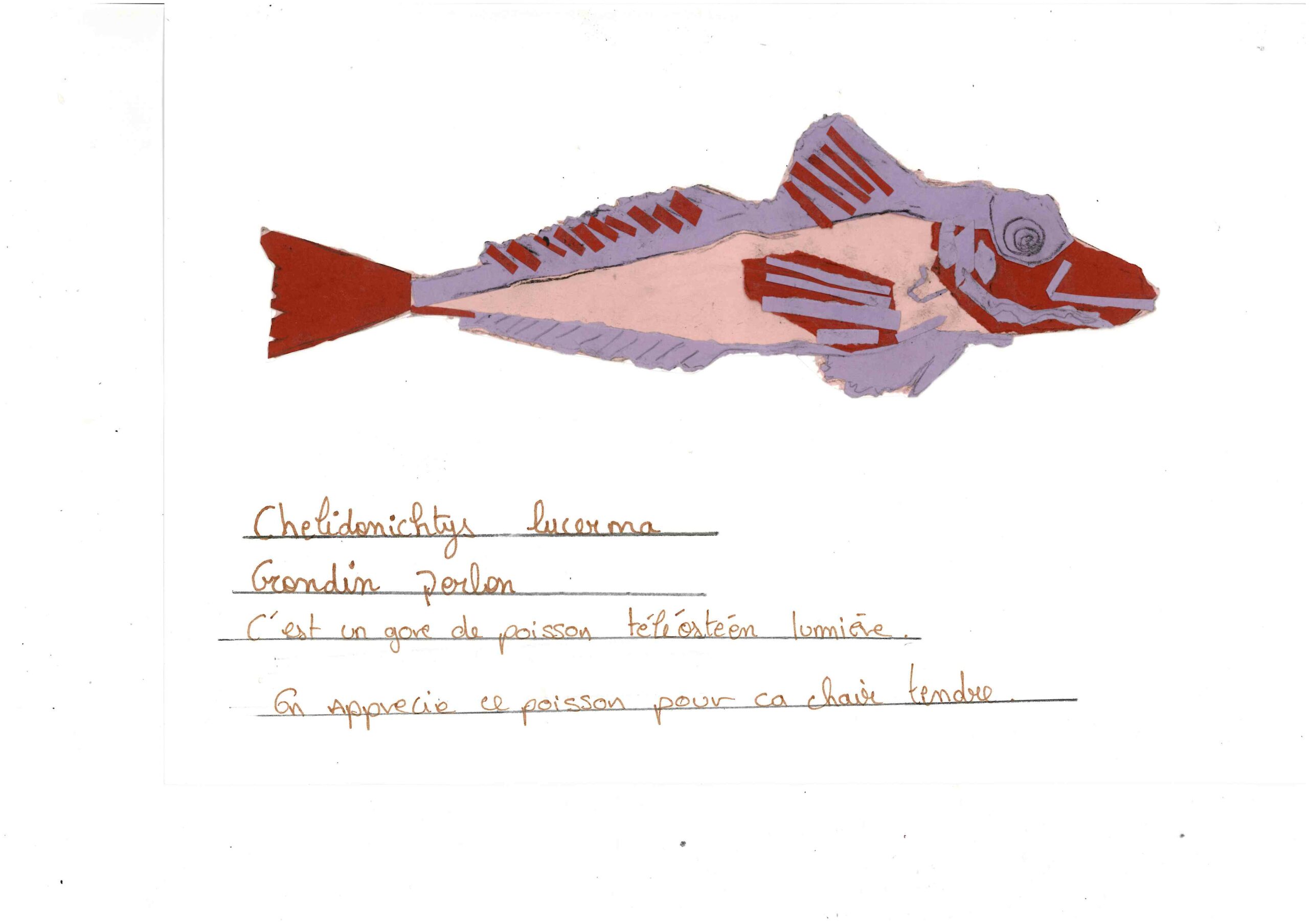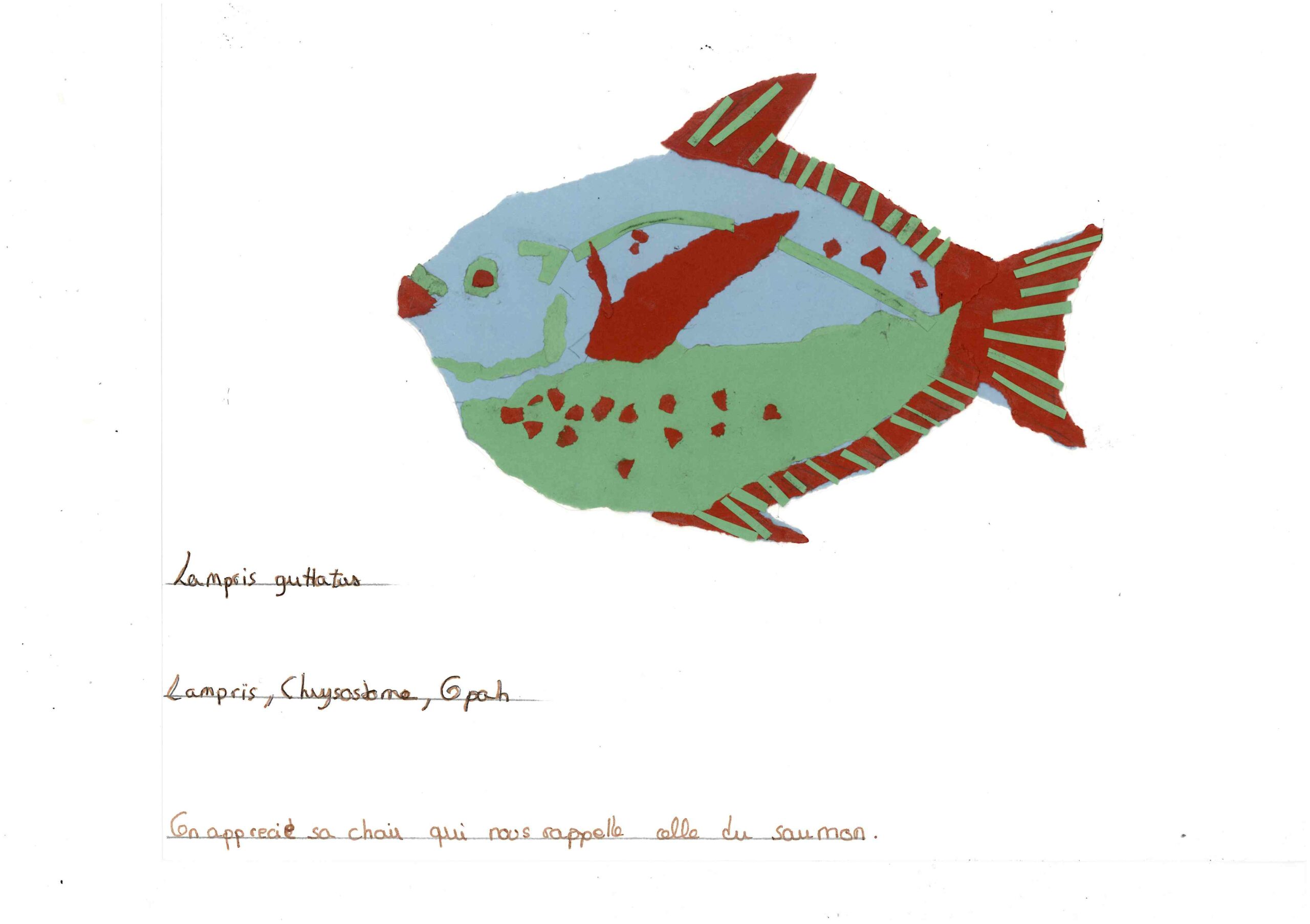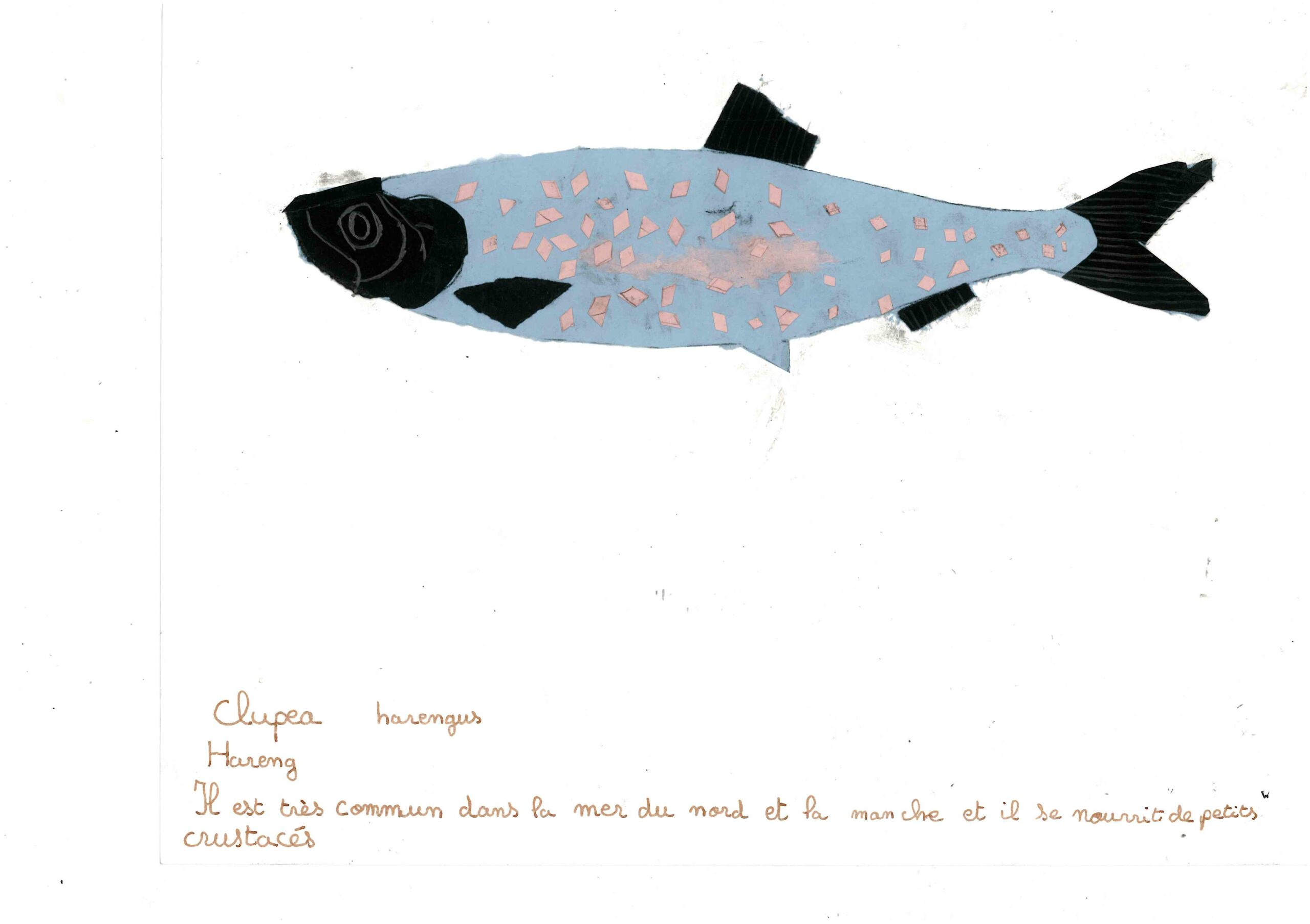 Le projet en partenariat avec le Salon du livre, consistait à inventer des poissons, après avoir étudier au Muséum l'histoire de l'évolution, ses raisons, l'approche scientifique du dessin "ex natura fecit", etc... Nous sommes allés voir "Mobydick" de John Huston également, et avons consulté au CDI de nombreux livres sur la pêche ou la vie de marins