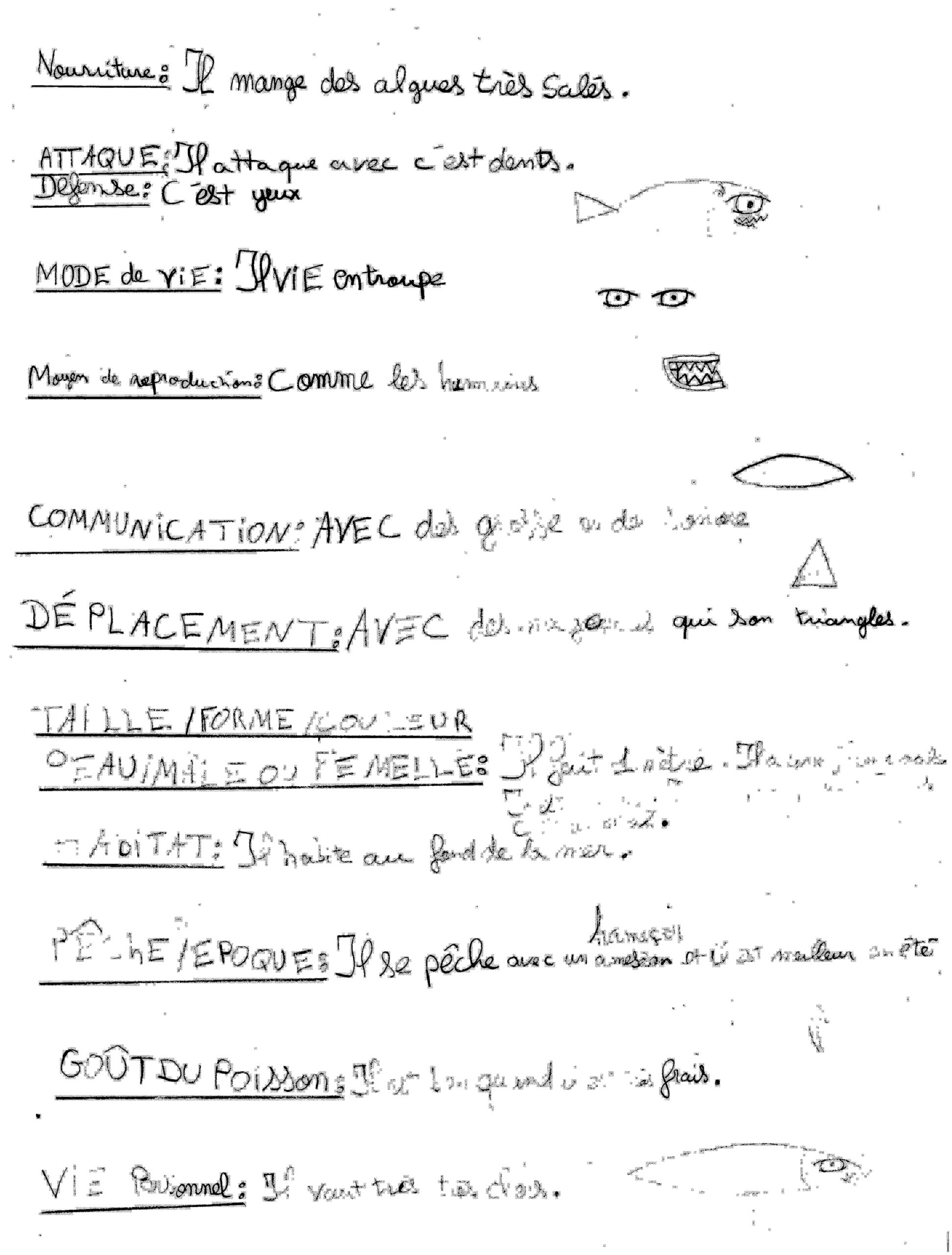l'enjeu étant pour la professeur et moi de faire comprendre aux élèves que l'imagination, la création d'êtres fictifs devait se conformer au réel.