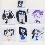 Encore une fois, l'enfant se sert des signes extérieurs visibles pour mieux appréhender et comprendre le monde dans lequel il vit mais aussi ce qu'il ressent lui-même. Observez tout particulièrement les yeux, dans ces dessins. Ne dit-on pas que les regards en disent parfois plus longs que les mots ? Le travail sur l'expression des yeux, qu'ils soient grand ouverts et pétillants ou au contraire sombres et noirs de tristesses, est saisissant.