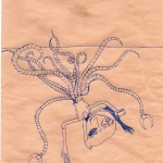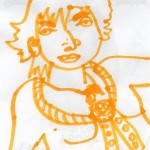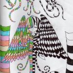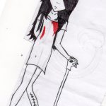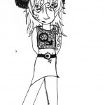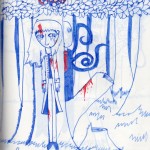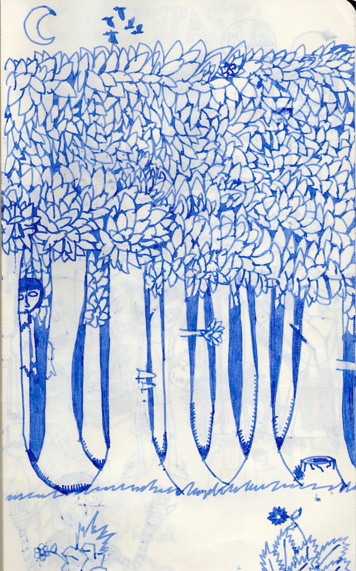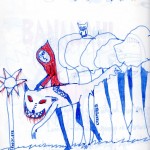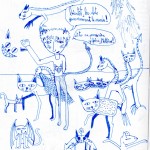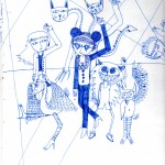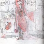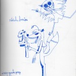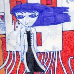 Elle utilise peu la couleur, c'est le trait au crayon ou au bic qui l'intéresse. Elle a le soucis des détails, des expressions.