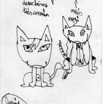 Ses chats, n'ont rien de mignon comme ceux peuplent les réseaux sociaux, pas de "chatteries" dans ses dessins . Mais des chats un peu inquiétants, aux oreilles pointues, aux muscles tendus.