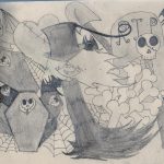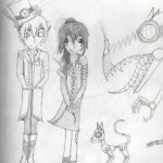 Louise investit des mondes imaginaires , les jeux , les BD , les mangas surtout , se réapproprie les codes de ces univers peuplés d'étranges personnages aux pouvoirs magiques et réinventent des êtres dont elle décrit précisément la vie et le rôle dans les histoires qu'elle écrit.