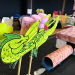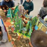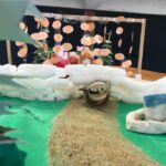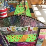 Les enfants exposent leur chemin à la Cantine Wogenscky - Le Corbusier à Marçon, à partir d’un texte et de dessins incitatifs de Claude Ponti (appel à projet créatif 2024) et se sont inspirés des albums jeunesse lus en classe.