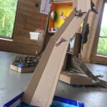 Abel, Kylia et Lylou grimpent dans la tyrolienne pour descendre au toboggan.